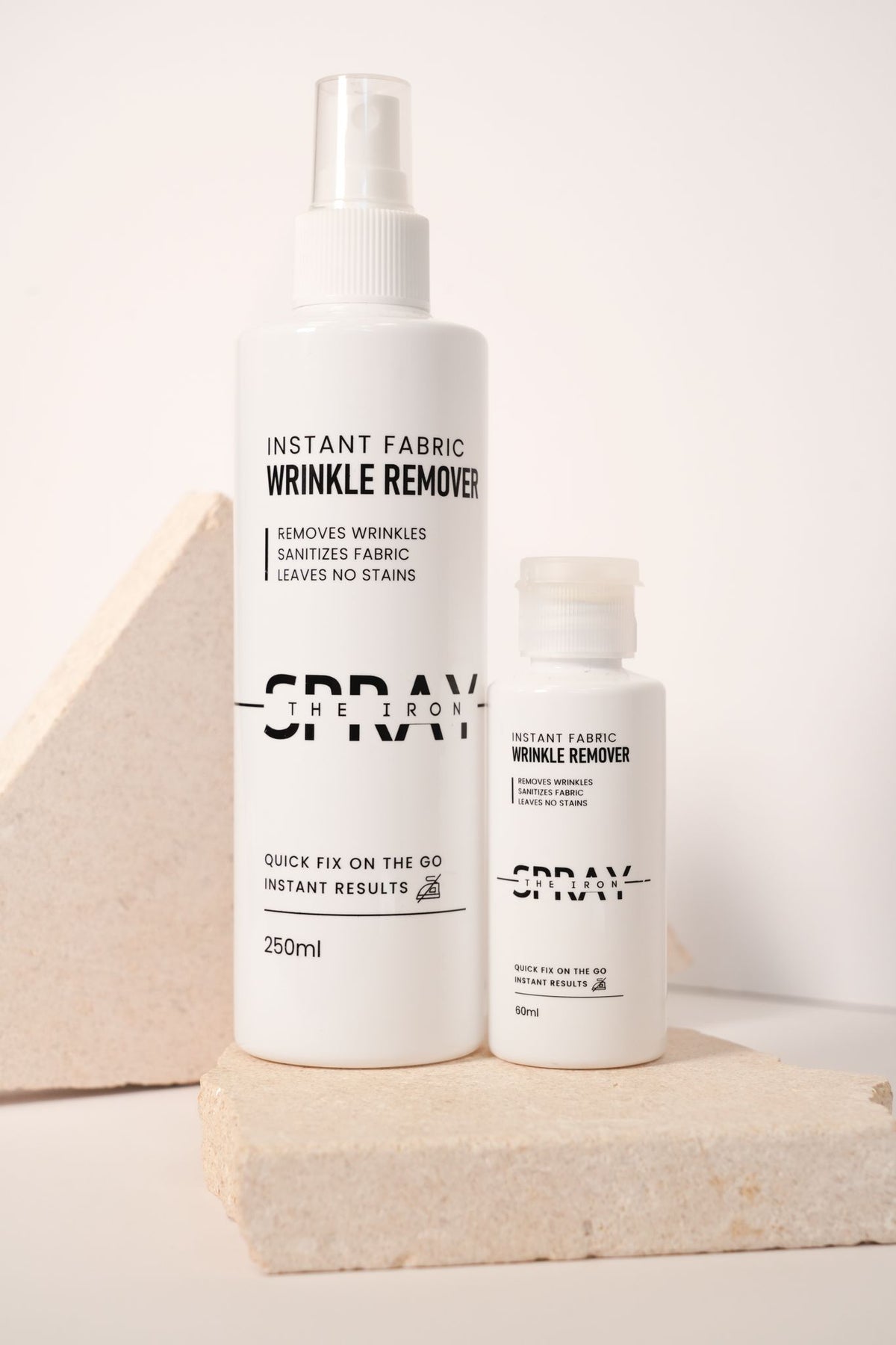 Stay wrinkle-free wherever you go with our convenient Travel Pack. This bundle includes a compact, easy-to-carry bottle of The Iron Spray — perfect for slipping into your handbag, backpack, or luggage. Designed with natural ingredients, it smooths out creases in seconds and doubles as a fabric refresher, keeping your clothes crisp and fresh on the move.